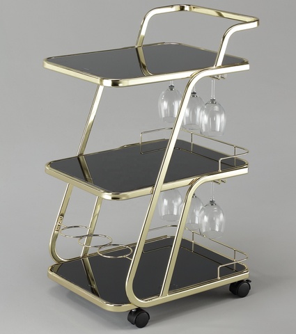 Chariot contemporain à 3 niveaux de service de café et de thé en métal et verre trempé pour hôtel et supermarché