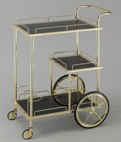 Chariot de cuisine en bois pliant avec finition en chrome et laiton