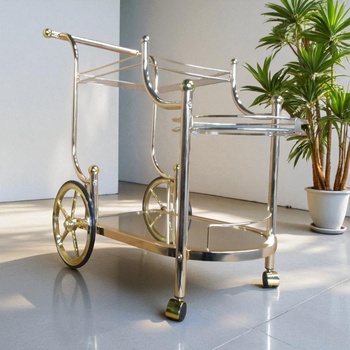 รถเข็นไม้พับได้สำหรับห้องครัวทำจากโครเมี่ยมและเคลือบทองเหลือง