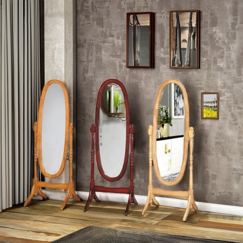 กระจกยืนไม้มีล้อ